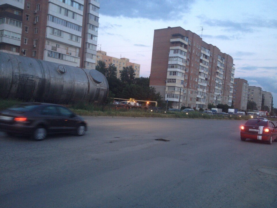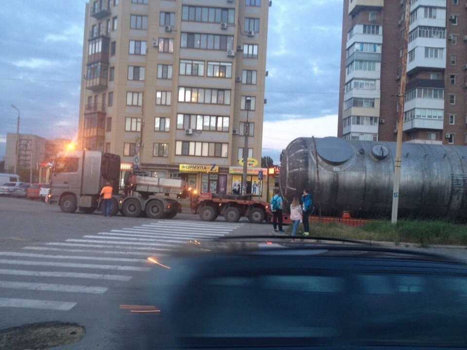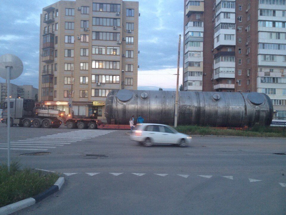 Цистерну везли через весь Таганрог вечером, однако от любопытных глаз горожан скрыться сложно.