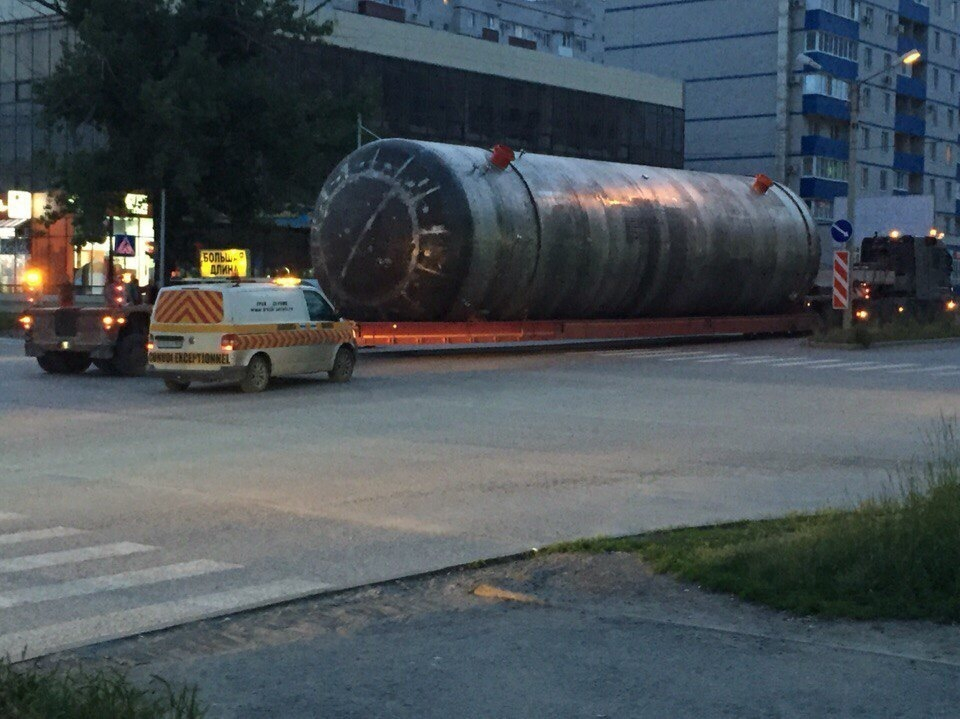 Из Таганрога на специальном транспорте с автомобилем сопровождения в Волгодонск была доставлена цистерна весом чуть более 100 тонн. Емкость для нефтеперерабатывающего завода в Татарстане изготовил завод «Красный Котельщик».